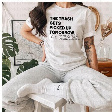 The trash gets picked up tomorrow. Be ready.